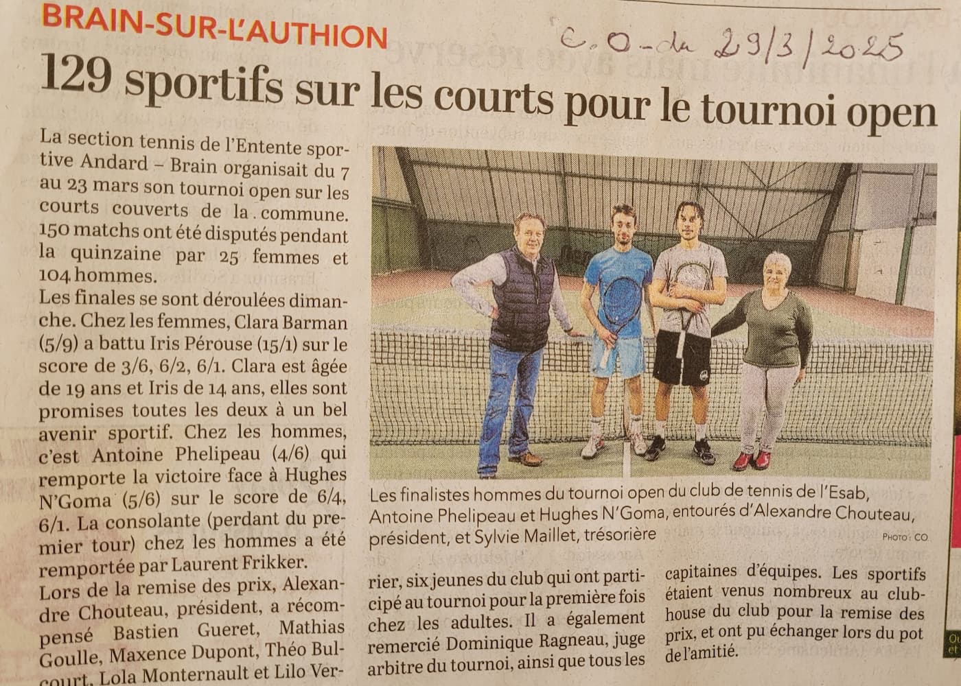 Le tournoi Open s'est terminé ce dimanche 23 Mars 2025 par :